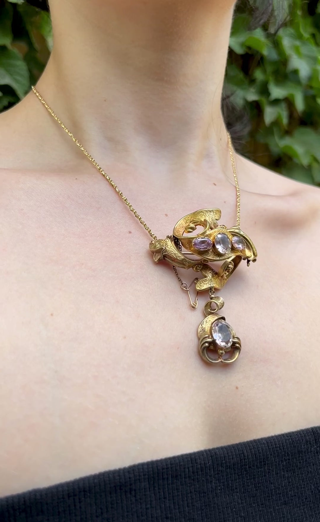 Antique Archeological Revival 15K & Pink Topaz Brooch