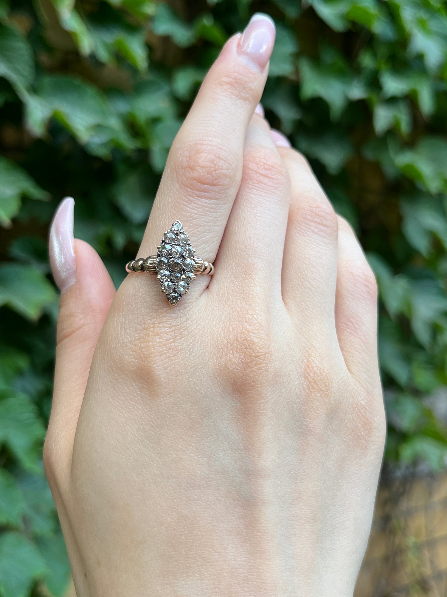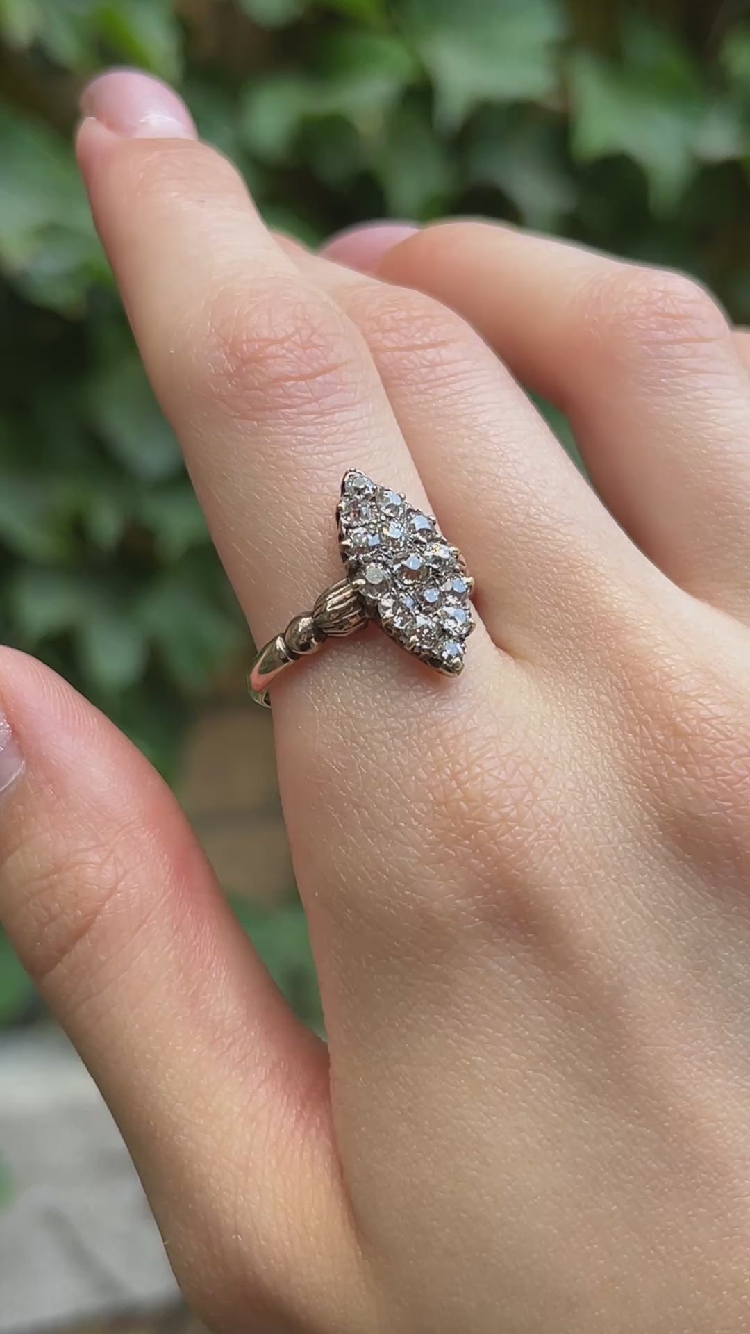 Antique 18K, Silver & Diamond Navette Dinner Ring