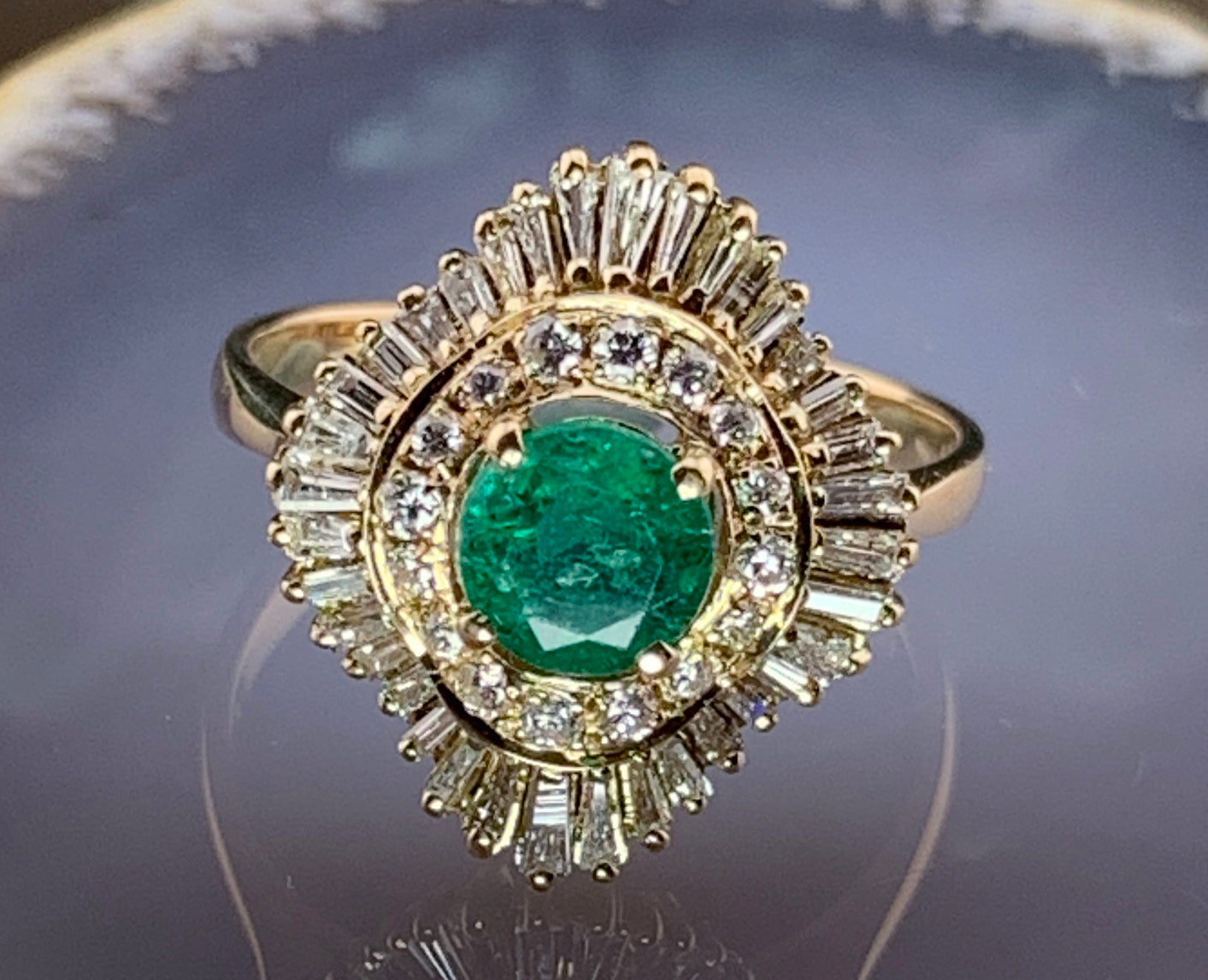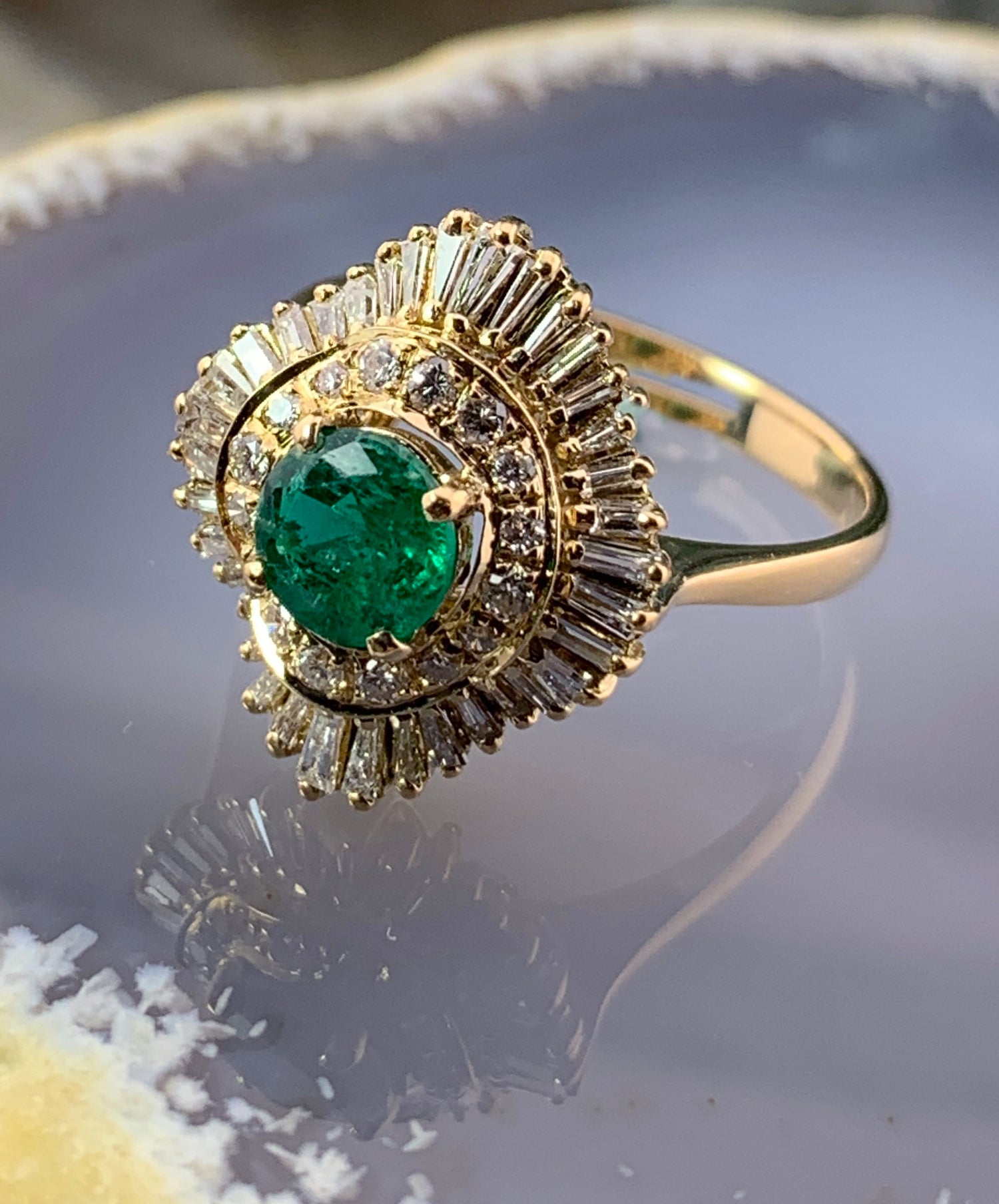 Vintage 18K, Diamond & Emerald Cocktail Ring